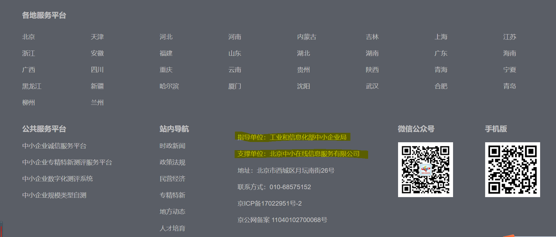 北京中小在线信息服务有限公司上级单位为:工业和信息部中小企业司;