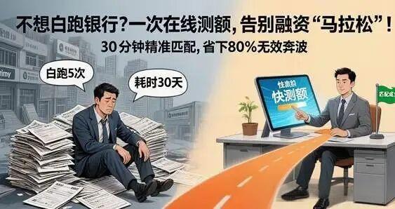 “这个月我已经跑了6家银行,见了9个客户经理,填了十几份申请表,结果要么不符合条件,要么额度太低,要么利率太高……要是能先在线*测试额度,提前了解自己能匹配到什么产品,就不用白白耗费这么多精力了。”这是许多中小企业主在融资过程中的真实写照。