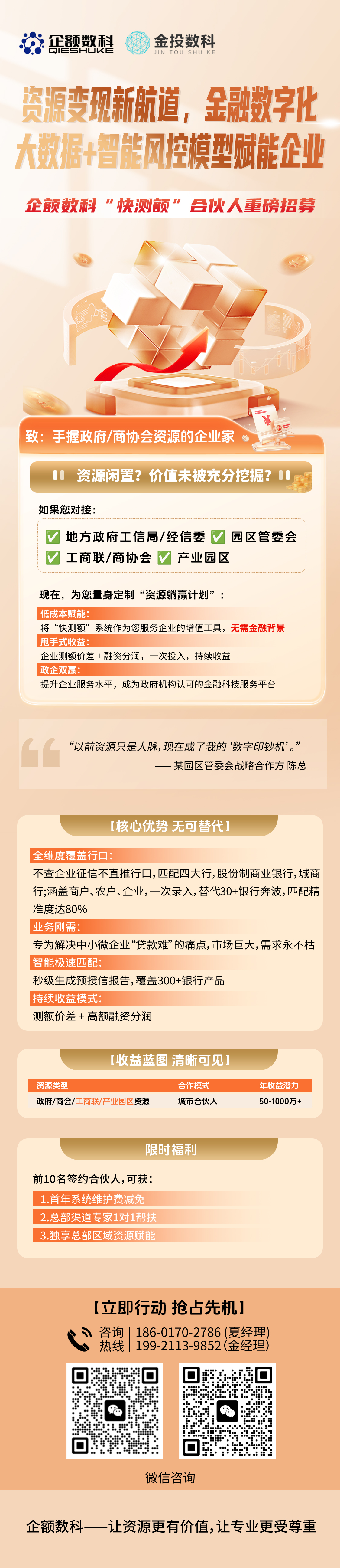请立即点击下方链接,企额数科真诚招募各类合伙人
